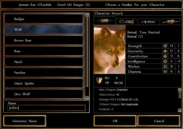 - After finally biting the bullet and leveling said character up to Ranger 6/Druid 6, it all turned out like MrZork said. What threw me off was the animal companion's page in the level-up menu, showing the Animal Companion as being of a lesser Hit Dice count (something like 7 Hit Dice); once I finished leveling up, the wolf's actual Hit Dice were as they should be. This was on the Legacy of the North server, if that matters. Thank you, Zork. BloodyBay from YouTube (talk) 07:27, September 28, 2017 (UTC)