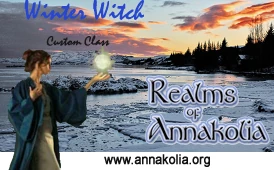 The winter witch is a specialized spellcaster, focusing on ice spells. She is not necessarily a witch, nor even female, even though many of them have been named such by local farmers and peasants. This is a custom prestige class on the persistent world Realms of Annakolia.